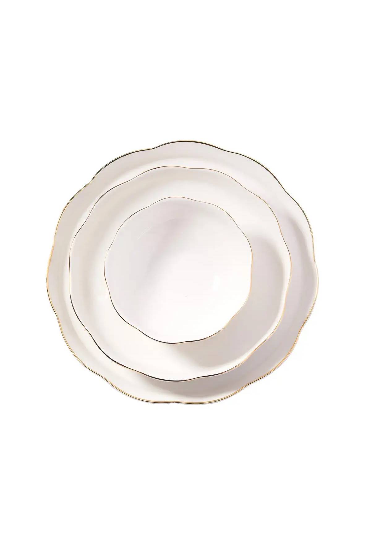 • Zarif Altın (Gold) File: Tabak kenarlarını çevreleyen ince altın şeritler, porselenin beyazlığı ile lüks bir kontrast oluşturur.