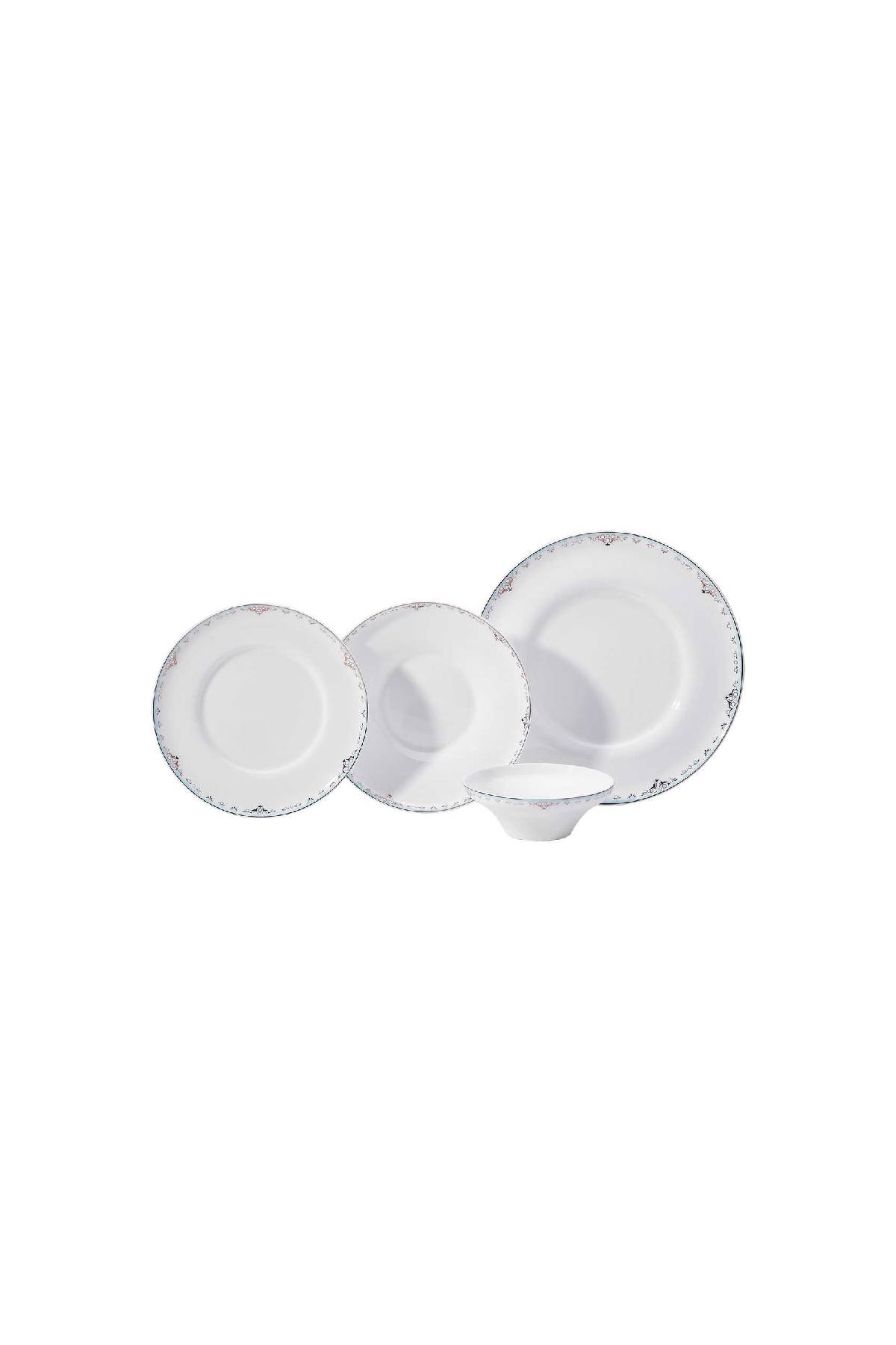 Set İçeriği (Özet) Servis Tabağı, Yemek Tabağı, Pasta Tabağı, Çorba Kasesi, Kayık Tabaklar, Tuzluk ve Biberlik