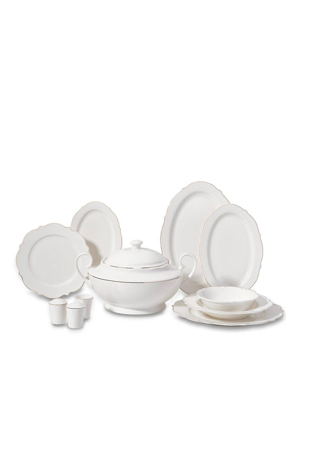 Set İçeriği 12 Servis, 12 Yemek, 12 Pasta Tabağı, 12 Kase, Kapaklı Çorba Tenceresi, Oval Kayık Tabaklar ve Baharatlık Seti