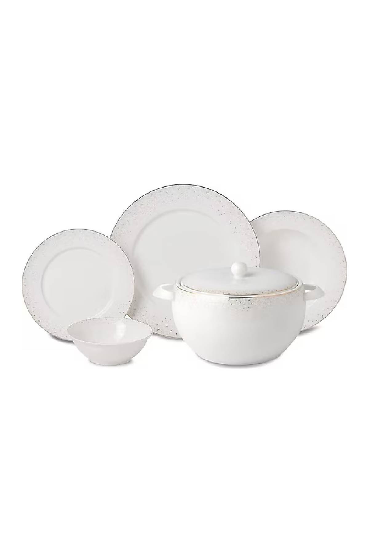 Korkmaz A8364 Perla Col 60 Parça Yemek Takımı – 12 Kişilik, Fine Bone Porselen, Işıltılı Benekli Desenli Lüks Set
