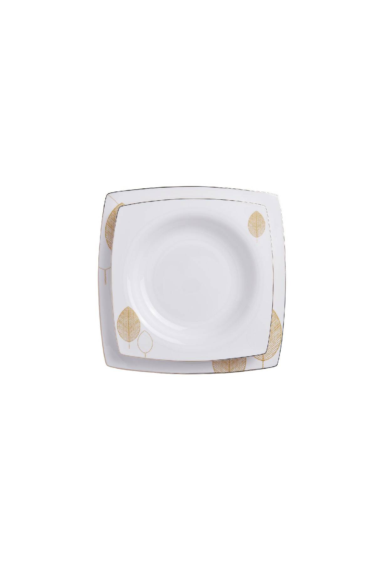 Korkmaz A8456 Bone Selection 60 Parça Kare Yemek Takımı – 12 Kişilik, Fine Bone China Porselen, Altın Yaprak Desenli Lüks Sofra Seti