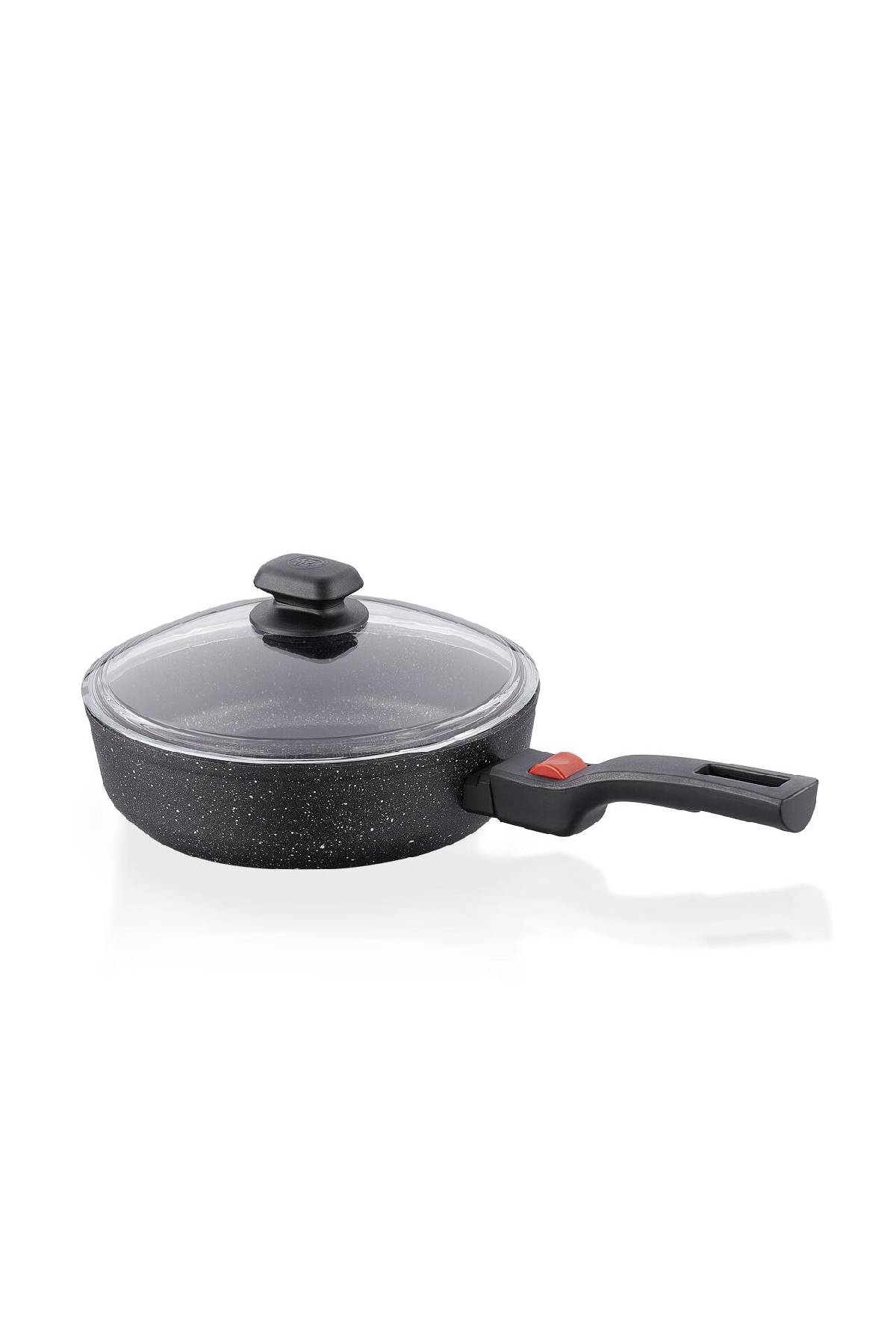 Korkmaz Ornella Pratik Kısa Tencere A2962 24×6,5 cm – Granit Görünümlü PTFE Kaplama, Çıkarılabilir Saplı