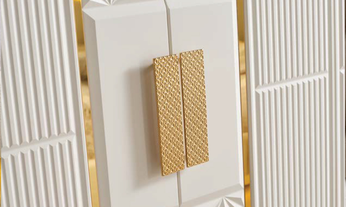 Gardırop Tasarımı Orta Kapaklarda Geometrik Freze/Kabartma Desen, Gold Çerçeve Detayları