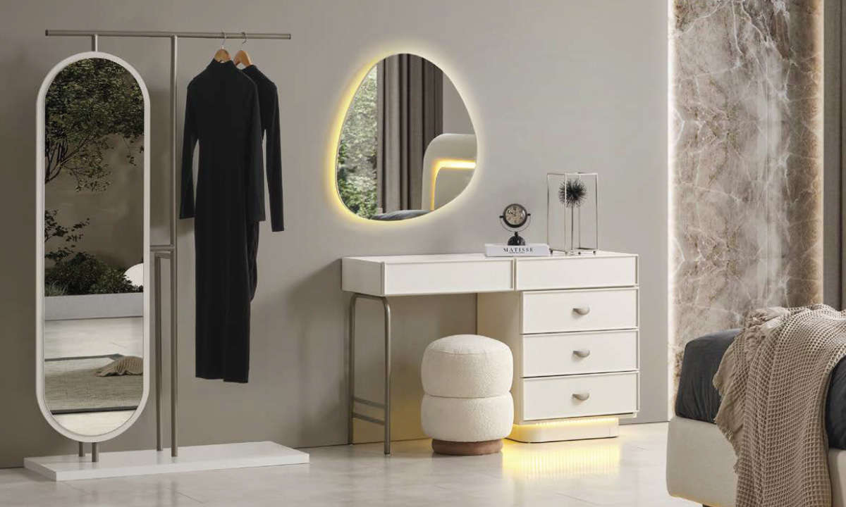 • Ferah Görünüm: Geniş aynalı gardırop ve açık renk paletiyle aydınlık atmosfer.