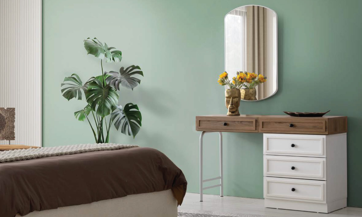 MDF Tisan Yatak Odası Takımı, country (kır evi) esintili panjur detaylarını modern ve yuvarlak hatlarla birleştirerek yatak odanıza huzurlu ve estetik bir atmosfer katıyor. Yüksek kalitede ve sağlam MDF malzeme kullanılarak üretilen bu takım, beyaz ve doğal ahşap (meşe/kayın) tonlarının ferahlatıcı uyumuyla dikkat çeker.