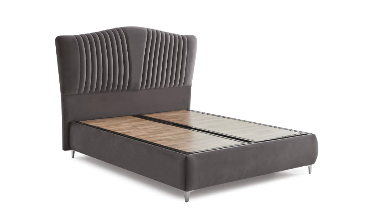 Mokka Lüks Karyola / Baza Seti - Kanatlı Dikey Fitilli Başlık, Sandıklı Depolama