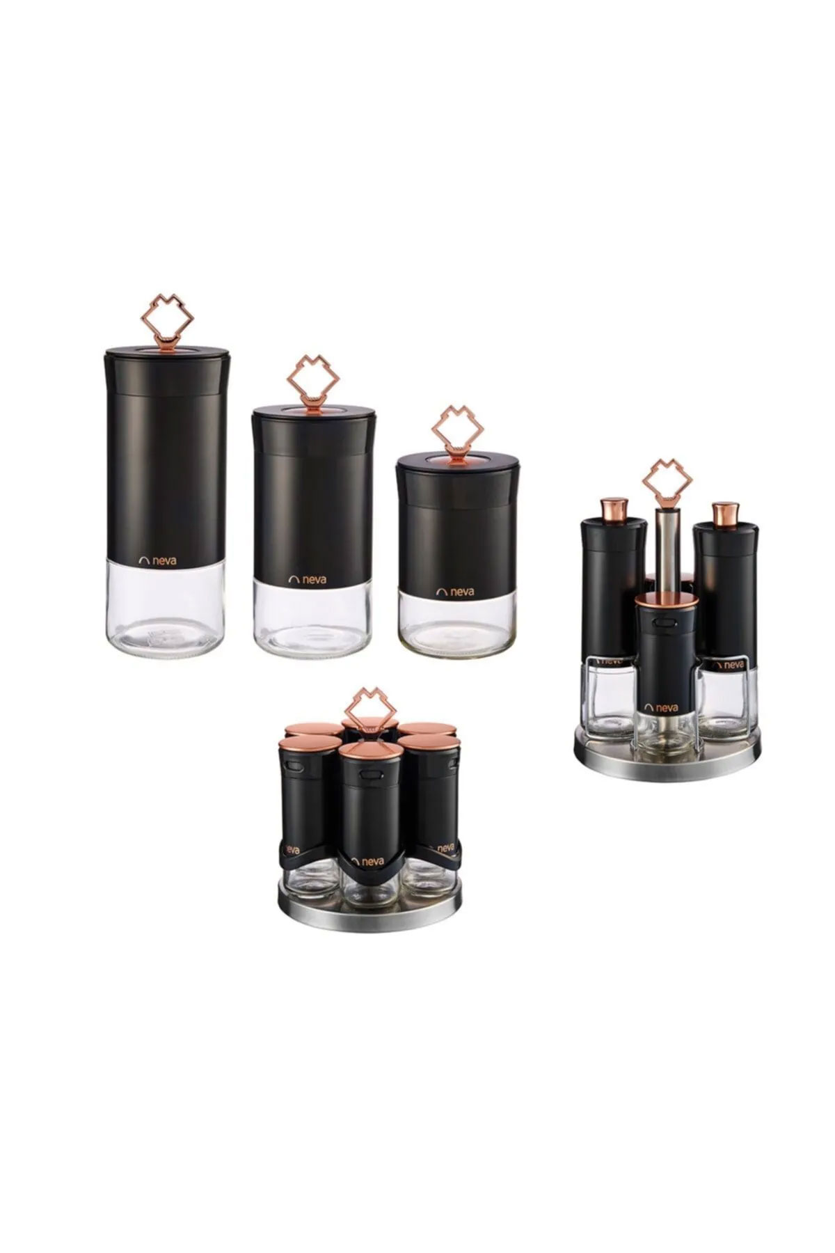 3 Boy Kavanoz, 6’lı Dönen Standlı Baharatlık, 4’lü Dönen Standlı Yağlık & Sirkelik