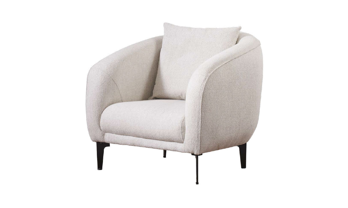 Göz Alıcı Modern Form: Yuvarlak hatları ve kavisli sırt yapısı, klasik tekli koltuk anlayışını yıkarak evinize modern bir mimari dokunuş katar.