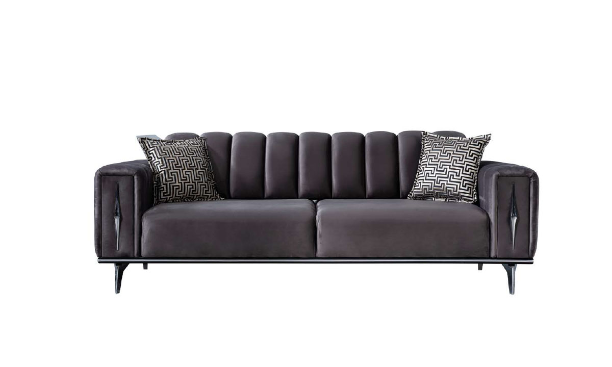 Piazza Modern 3’lü Kanepe – Dikey Kapitone İşlemeli Antrasit Kadife Dokulu Koltuk