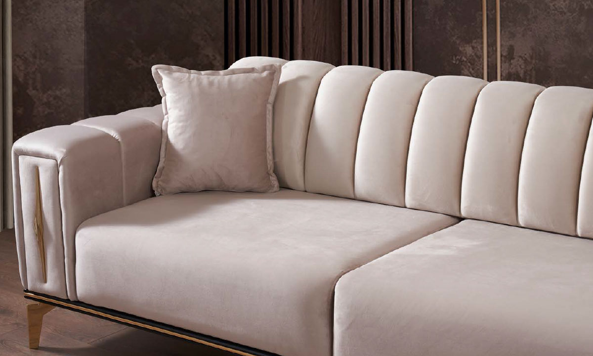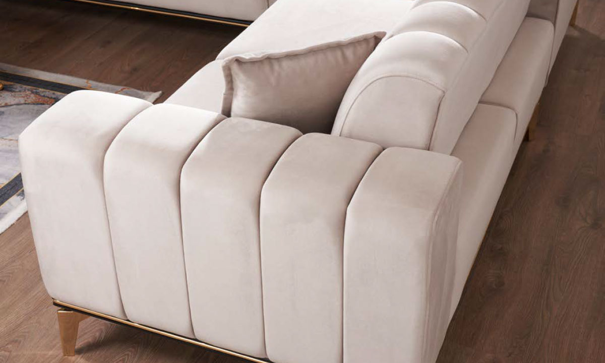 Tasarımın odak noktasını oluşturan sırt ve kol içlerindeki titiz dikey kapitone dikişler, kadife dokulu krem kumaşın zarafetini ön plana çıkarır. Tasarımı tamamlayan gold (altın) renkli metal profil detaylar ve yüksek metal ayaklar, ürüne modern-avangart bir şıklık kazandırır. Yüksek yoğunluklu sünger yapısı sayesinde oturum konforundan ödün vermeyen Piazza, sağlam gürgen iskeletiyle uzun ömürlü bir kullanım vadeder. Yerden yüksek ayak tasarımı, robot süpürge kullanımına tam uyumlu olup temizlik süreçlerini kolaylaştırır.