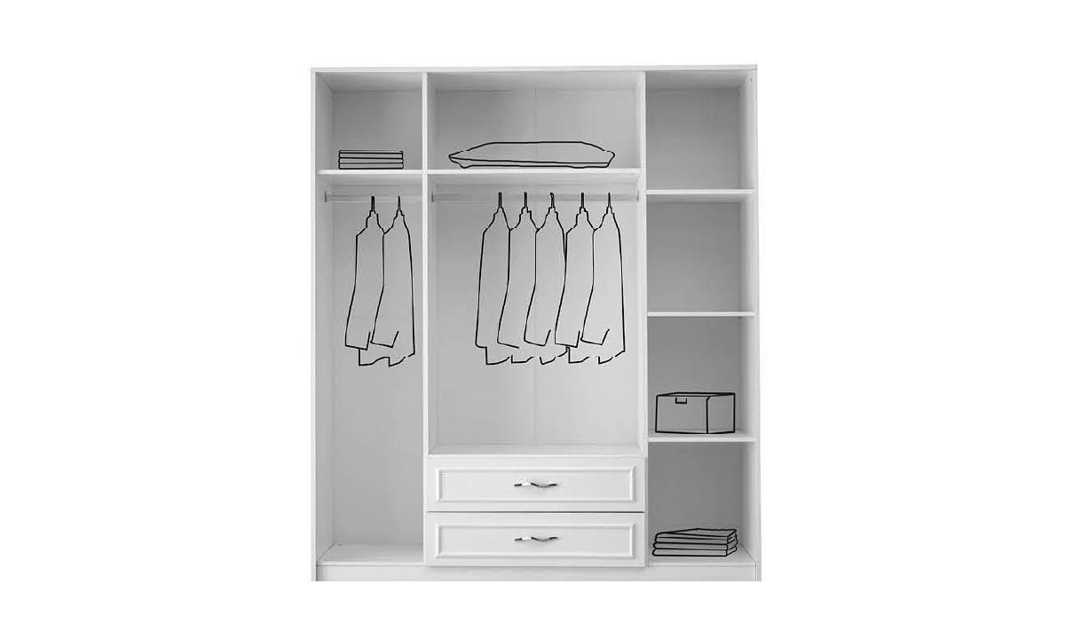 • Bol Raflı Bölümler: Yan ve orta bölmelerde çok sayıda raf, katlanmış giysiler, ayakkabı ve kutuları düzenlemeniz için idealdir.