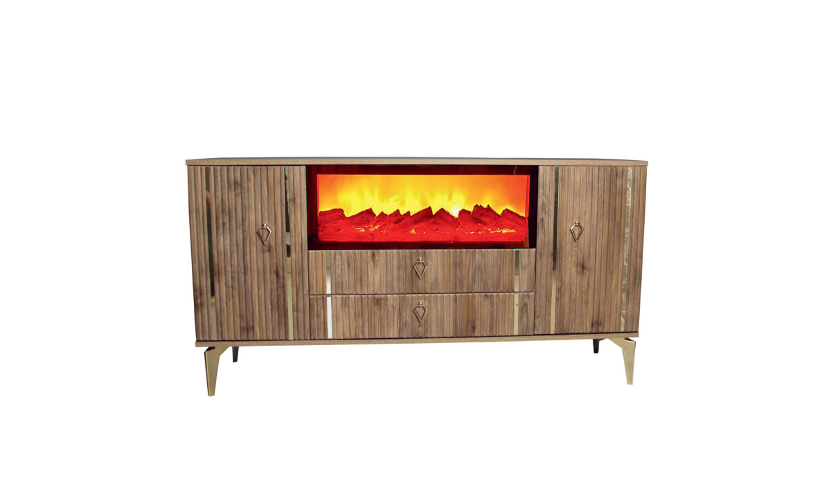 • Entegre Elektrikli Şömine: Konsolun merkezine yerleştirilen şömine ünitesi, gerçekçi alev efekti ile görsel bir sıcaklık ve huzur sunar.