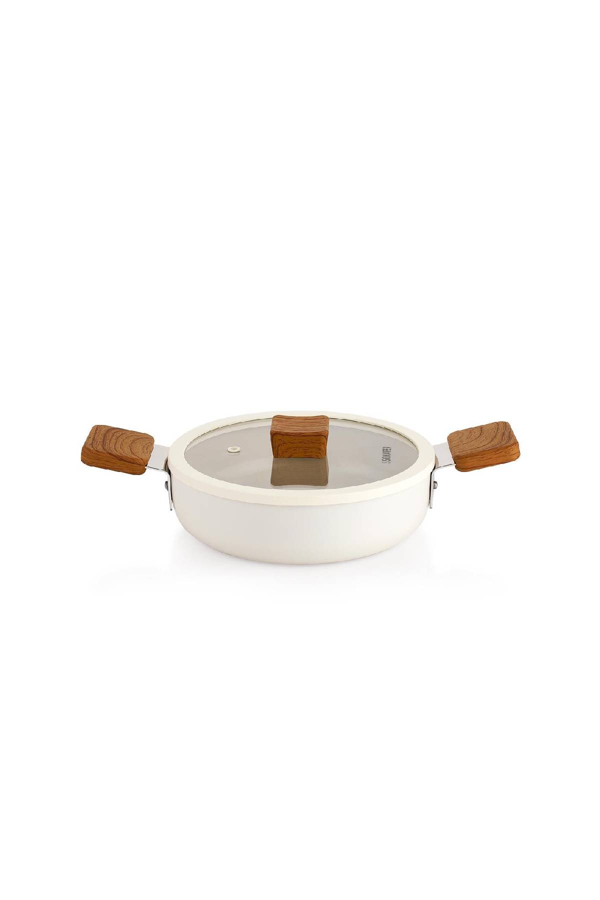 Schafer Ceramoni Seramik Kapaklı Sahan 20 cm – Krem, Üstün Yapışmaz Seramik Yüzey