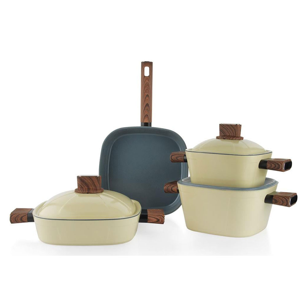 Schafer Challenger Seramik Tencere Seti 7 Parça Krem | Yapışmaz, Dayanıklı, Modern Tasarım
