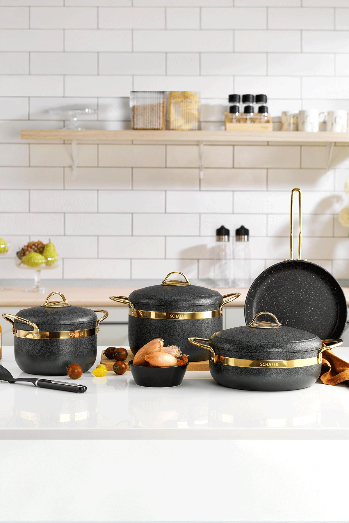 Schafer Goldie Tencere Seti 7 Parça-Siyah