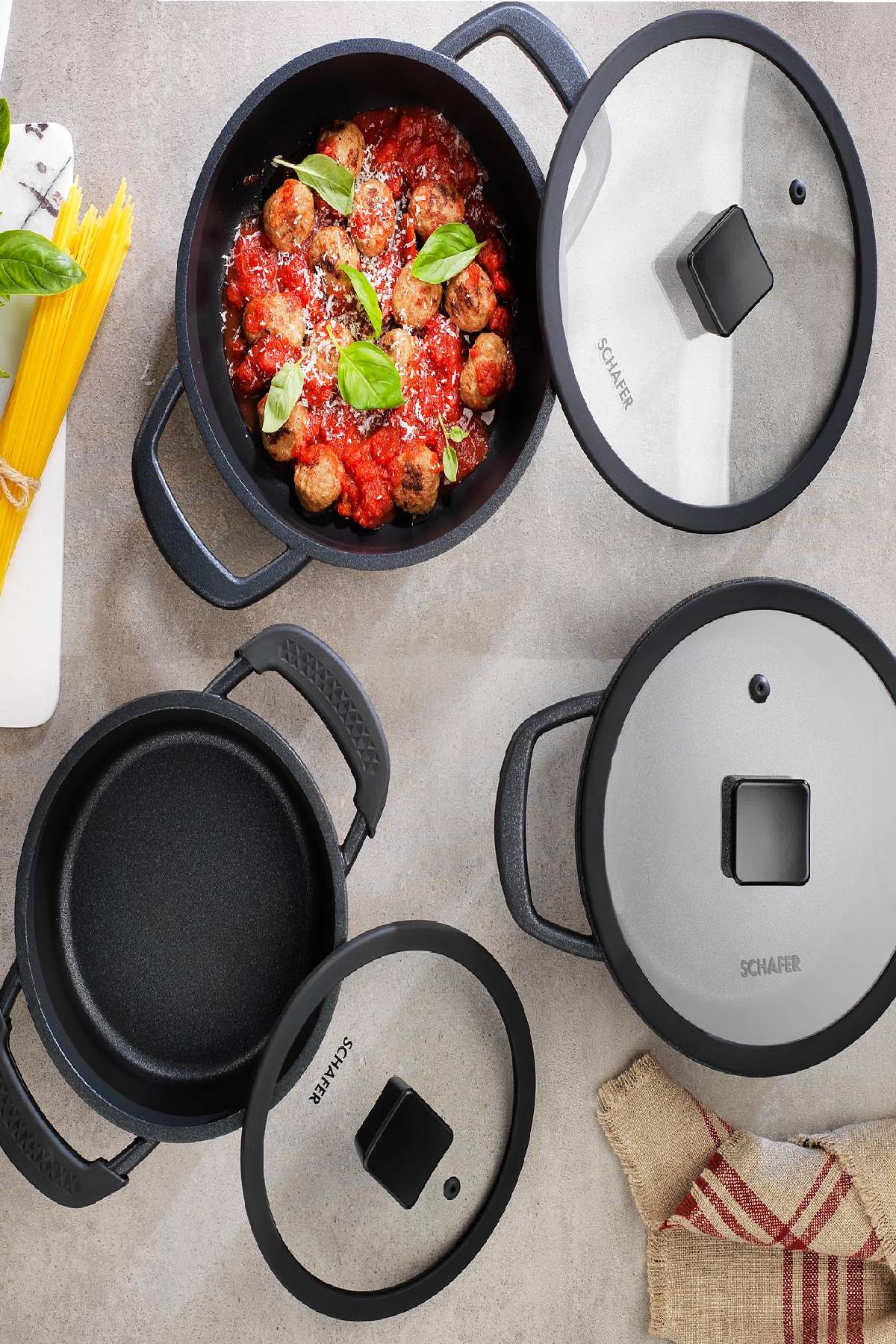 Schafer Hektor döküm tencere seti ile hem sağlıklı hem de pratik yemekler hazırlayabilir, mutfağınızda şıklığı tamamlayabilirsiniz.