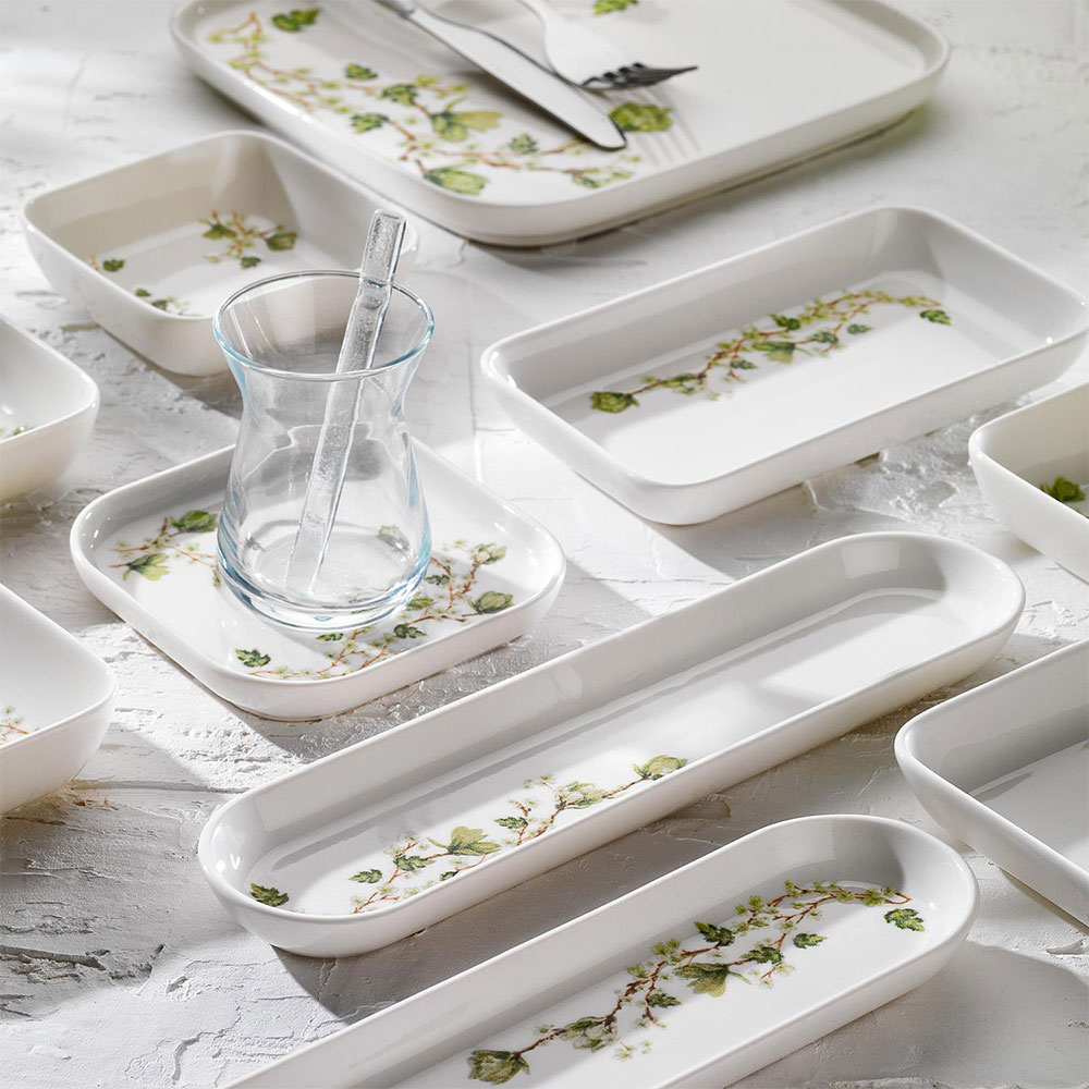 • Tasarım: Yeşil yaprak desenli, modern ve zarif