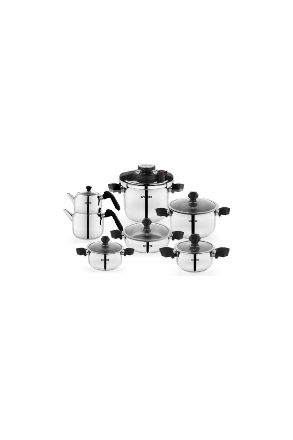 Schafer New Honor Çelik Çeyiz Seti 13 Parça – 18/10 Paslanmaz Çelik, Düdüklü Tencere ve Çaydanlık Dahil, İndüksiyon Uyumlu