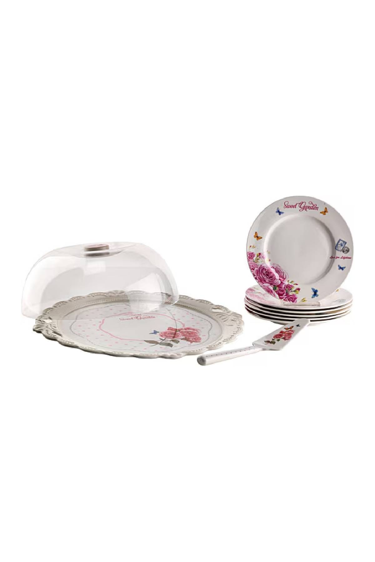 Setin en dikkat çeken parçası olan kapaklı sunum tepsisi, hazırladığınız kek, pasta veya kurabiyelerin tazeliğini uzun süre korumasını sağlarken sofranızda hijyenik bir sunum imkanı yaratır. Ergonomik porselen saplı spatulası, servis esnasında size kolaylık sağlar. Hem göze hem damağa hitap eden sunumlar için tasarlanan bu set, Atılım AVM güvencesiyle mutfağınızdaki yerini almaya hazır.