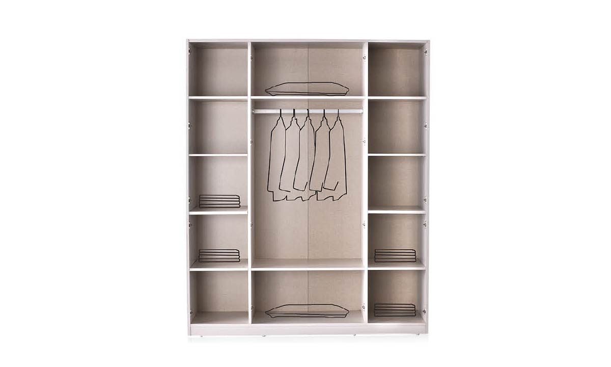 • 4 Kapılı Geniş Hacim: Dört kapılı geniş yapısı, tüm kıyafet, aksesuar ve tekstil ürünlerinizi düzenli bir şekilde saklamanız için yeterli depolama alanı sunar.