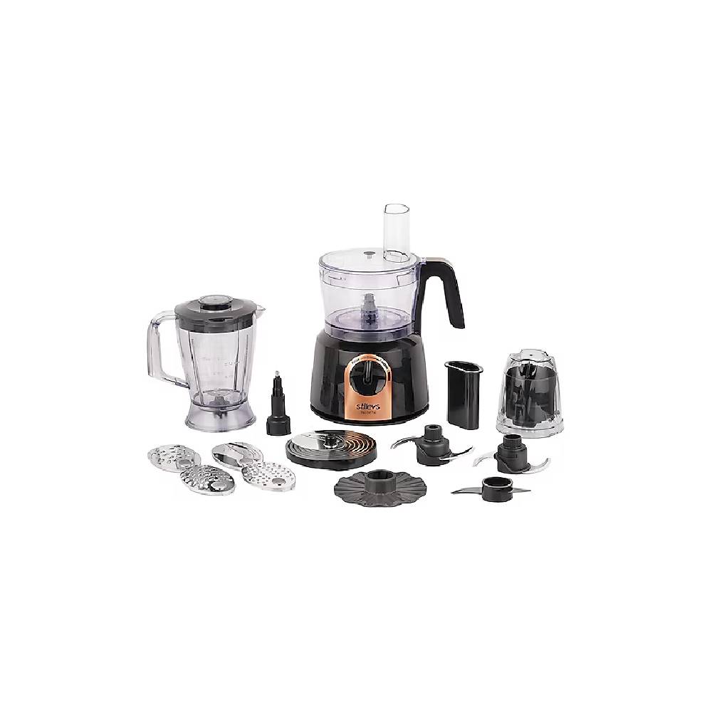 Stilevs Maxi Chef Pro Mutfak Robotu Siyah/Bakır – 1500W, Blender ve Doğrayıcı Seti, Çelik Dilimleme Diskleri