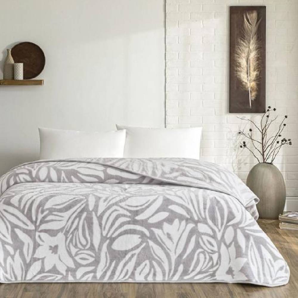 Taç Alina Çift Kişilik Battaniye: Gri Zarafeti ve Çiçeksi Konforun Uyumu