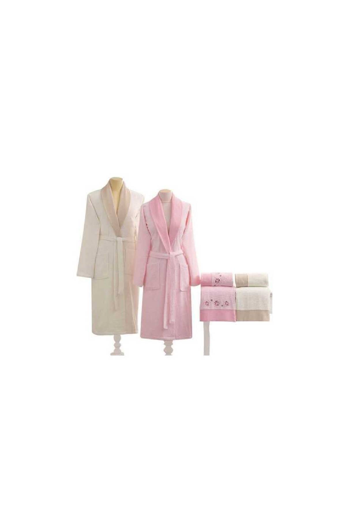 • Taç Comfort Aile Bornoz Seti Edita Pembe-Ekru * %100 Pamuk