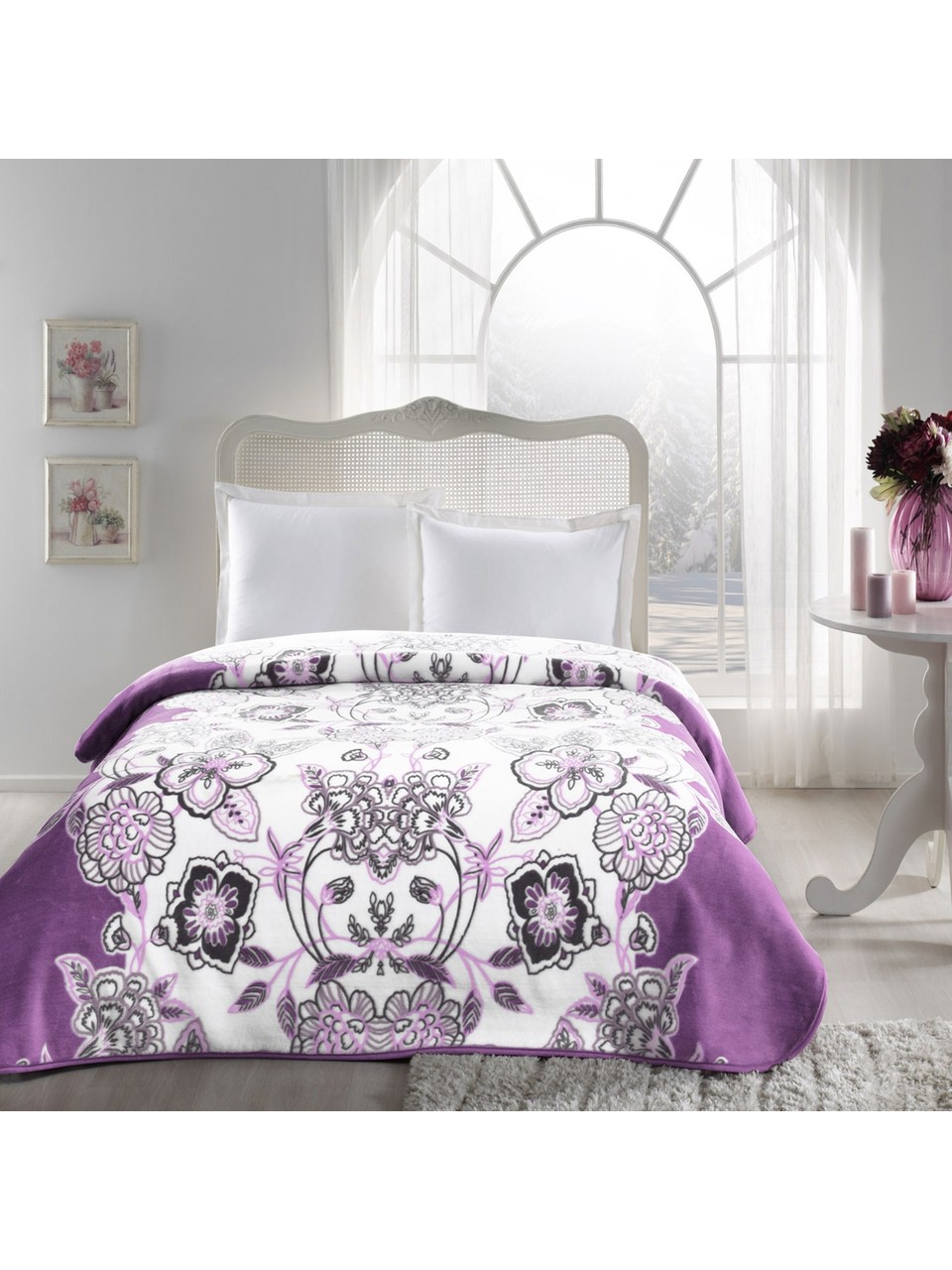 Taç Jasmine Çift Kişilik Battaniye Mürdüm