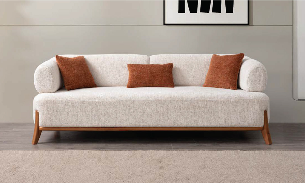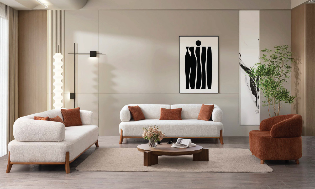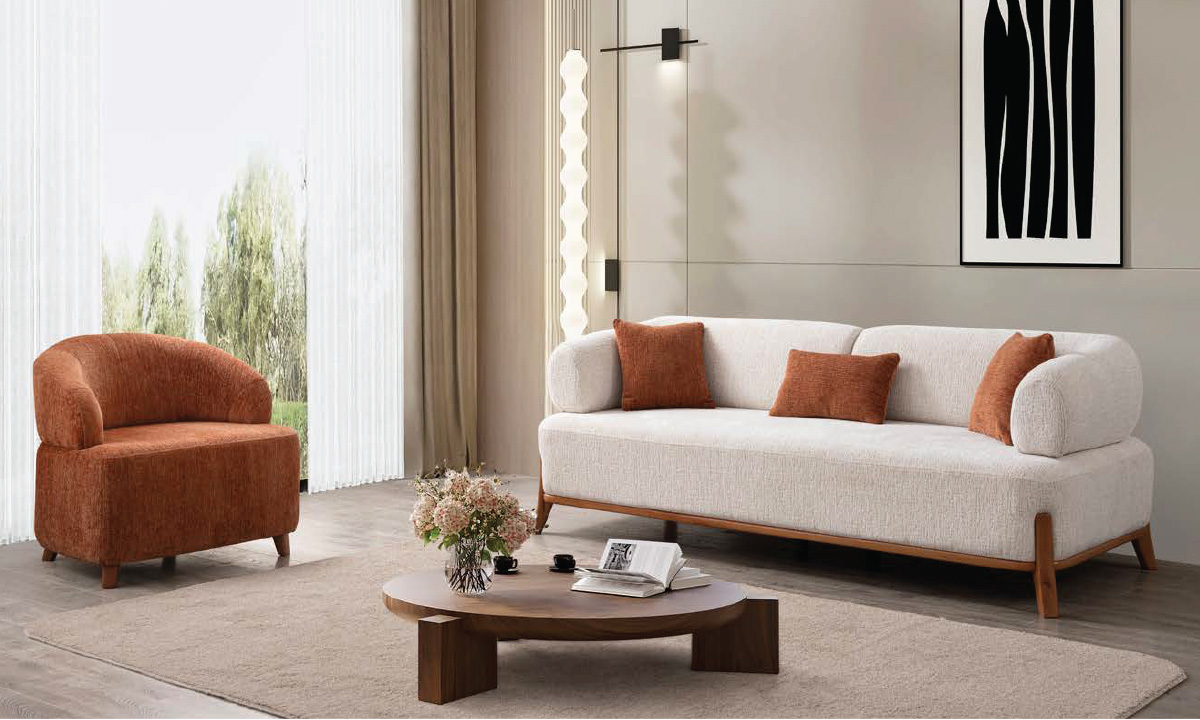 Togo serisi, ergonomik yapısı sayesinde uzun süreli oturumlarda bile üstün rahatlık sağlar. Yüksek yoğunluklu sünger dolgusu ve esnek destek yapısı, formunu uzun yıllar korur. 3+3+1 kombinasyonu, geniş salonlarda ferah bir oturma düzeni oluşturur.