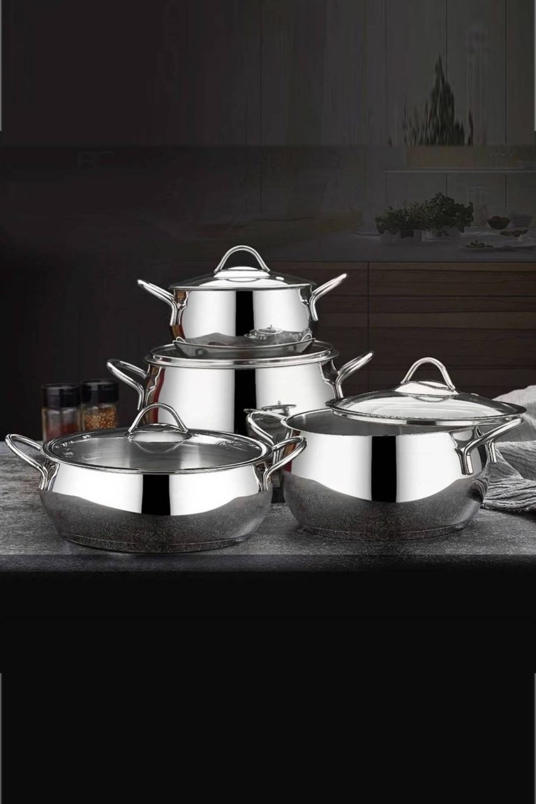First Class 8 Parça Çelik Güveç Tencere Seti Platin | Paslanmaz Çelik Kapaklı Lüks Tencere Takımı