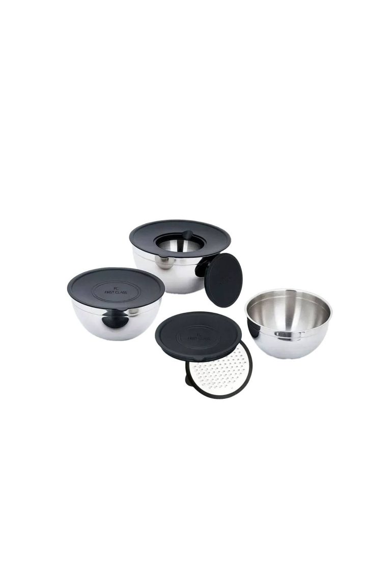 First Class 9 Parça Rendeli Çelik Saklama Kabı Seti – Paslanmaz Çelik, Kapaklı, Çok Amaçlı Kullanım