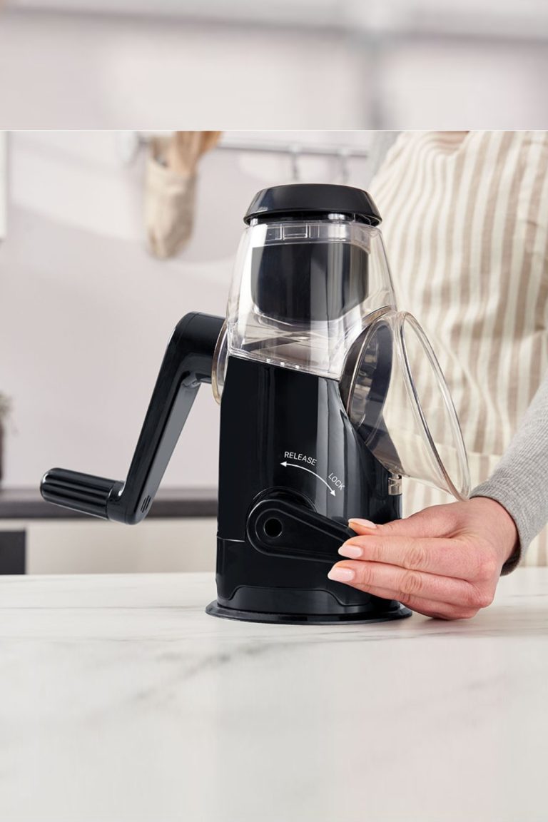 AROW TR-4632 Crusher Manuel Dilimleyici ve Rende Ekru – 3 Farklı Bıçak, El Koruyuculu, Vakumlu Taban